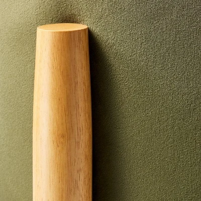 Add luxe style to your seating collection with the Elroy Round Velvet Ottoman with Wooden Legs from Threshold™ designed with Studio McGee. This round ottoman is upholstered in velvet fabric for an eye-catching look. Set on a wooden frame with four legs, it provides a comfy surface for sitting or resting your feet, and it can be spot cleaned or wiped clean for a quick refresh as needed.