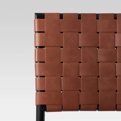 Bring a touch of delightful, distinctive seating style to your home with the Wellfleet Woven Faux Leather Metal Base Counter Height Barstool from Threshold™. This counter height barstool features a metal frame and faux-leather woven seat and back, as well as an armless silhouette to deliver both comfort and contrast. The barstool is supported by slim and straight tubular legs, accompanied by a sleek cross stretcher at the bottom for better stability and balance. This 24-inch barstool makes the perfect addition to your home workspace, kitchen or dining room.