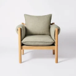 Accent any space of your home with the classic style of this Westbury Cane Lounge Armchair from Threshold™. This lounge chair with arms features a brown wooden frame with crisp lines along with cane back and sides to add texture and visual appeal to your space. The beige seat and back cushions add comfort to this upholstered lounge chair. Simply use this beige lounge chair in your living room, study area or any other space to add a comfortable seating option in your space.